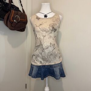 Elegant floral beige tank top with a delicate butterfly pattern. Perfect for casual outings or layering.