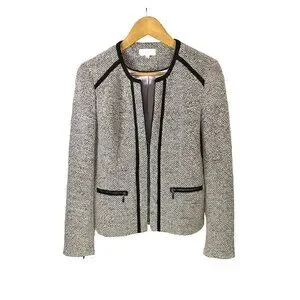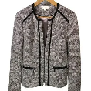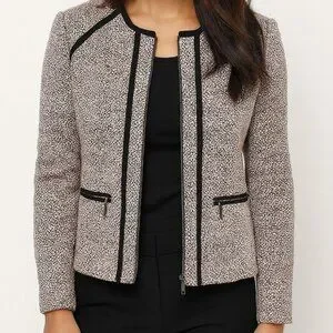 Laura Bouclé Chanel‑Style Zip Front Blazer – Size 4 - Pink Black Grey White