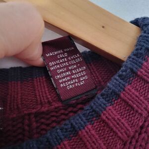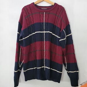 John Ashford 100% Cotton Plaid Knit Sweater Burgundy/Navy/White/Green Large 90s