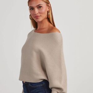 Vici normandie boatneck ribbed sweater, taupe, sz S, new with tags