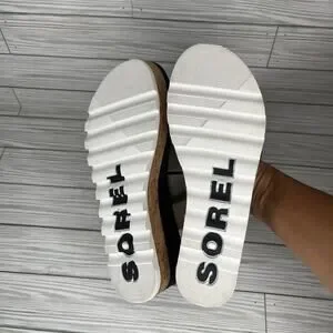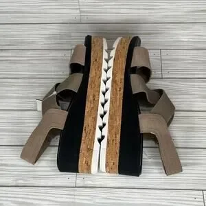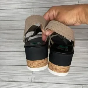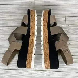 Sorel Cameron Platform Slingback Sandals Taupe Sea Salt Leather Women's Size 8
