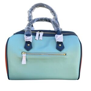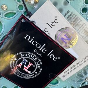 Nicole Lee USA Blue Floral Laser Cut Satchel Bag Rhinestone New Color Block