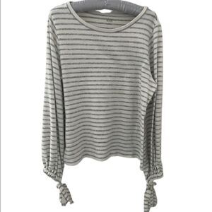 Warm and cozy long sleeved top with cute ties on the end of the sleeves. Great for the office or just with jeans.