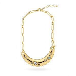 INC Gold Tone Crescent Necklace Blue Crystal Stone Statement Collar NEW