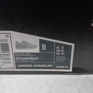 The Under Armour Essential Runner Shoes for men in size 11 are a versatile option for various activities such as running, jogging, cross-training, and casual wear. These grey sneakers feature a lace-up closure, durable rubber outsole, and cushioned insole for comfort and support. Made with breathable nylon upper material and a foam insole, these shoes are designed for all seasons and can be worn for a variety of occasions including activewear, casual outings, and workwear. The Under Armour brand is known for quality athletic footwear, making these shoes a reliable choice for active individuals.