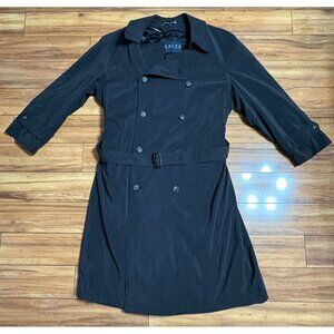 Vtg Ralph Lauren Trench Coat Wool Bld Black Double-Breasted Belt Lined Men's 44R
