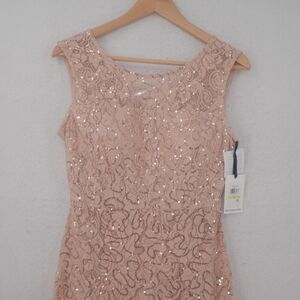 NEW Kensie Women's 4 Flounced Hem Sequin Asymmetric Midi Dress Blush Pink