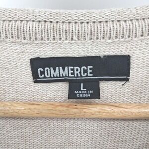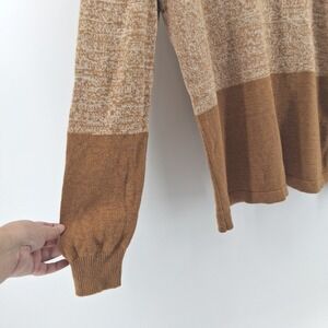 Commerce Mens Large Sweater Tan Brown Colorblock Crewneck Cotton Linen Blend