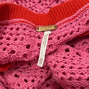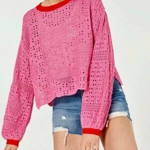 Free People Home Run Crochet Knit Pink Sweater | Size XSmall (Oversized)