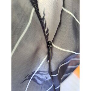 Vintage Black White Floral A-Line Skirt Striped Sheer Whimsygoth Fairygrunge 28"