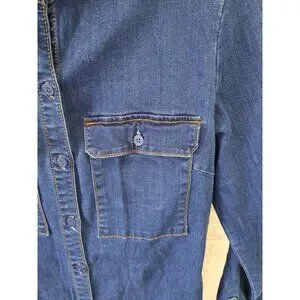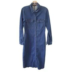 This denim shirt dress offers a polished yet casual look, suitable for various settings. Its cotton blend ensures comfort and durability for extended wear.