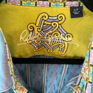 Robert Graham Button Up Blue Purple Shirt Men's Sz S Striped Contrast Cuff Silk