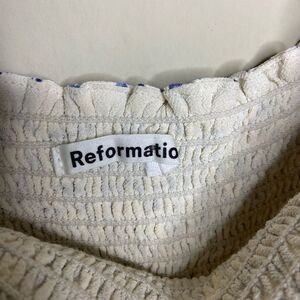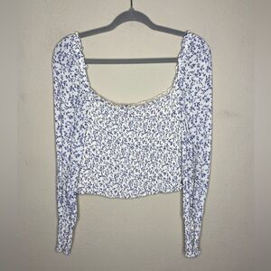 Reformation Pinto Top White Blue Blouse Long Sleeve Floral Size S