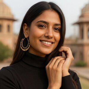 Indian Artisan Beaded Boho Chic Stylish Handmade Statement Hoop Earrings