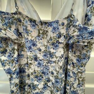 This elegant maxi dress showcases a beautiful blend of blue and white, creating a striking visual appeal. Its flowing silhouette offers a graceful and comfortable fit, perfect for any special occasion. The timeless design ensures you make a lasting impression. SKU 257