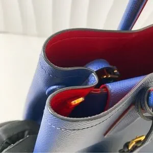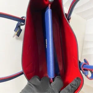 PRADA Double Medium Tote Bag Blue Saffiano Leather