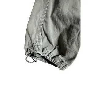 High-waisted cargo pants in a versatile green wash. Constructed from a durable cotton-blend twill, these utility trousers feature a multi-pocket design with four large bellows cargo pockets on the legs, two side slip pockets, and two rear patch pockets. The elasticized back waistband ensures a comfortable fit, while the adjustable bungee drawcords at the ankles allow for a customizable tapered or jogger-style silhouette. Finished with a classic button and zip fly closure, these pants blend functional workwear aesthetics with modern streetwear style.
