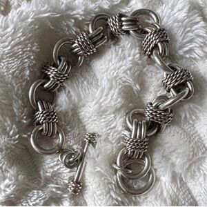 Stunning 925 sterling silver bracelet with heavy textured links and intricate knot details. Bold yet elegant — perfect for layering or as a statement piece. Feels substantial and high quality on the wrist. Details: • Solid 925 sterling silver • Textured link and knot design • Size: 6.75 • Excellent pre-owned condition : sterling silver bracelet, chunky silver chain, artisan jewelry, bold silver link, vintage bracelet, unisex jewelry