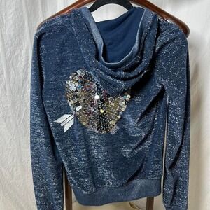 Victoria Secret Vintage Silver Sparkle Sweatshirt Hood Sequin Heart Size small