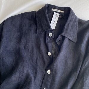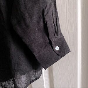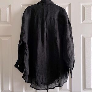 Effortlessly chic, lightweight linen button down shirt. Oversized, classic boyfriend style. Turn down, collared neck. Shell buttons. Easily pairs with anything from swimsuits to denim. Breezy, light and airy from the beach to cocktails. New!