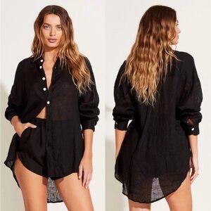 VITAMIN A ECOLINEN PLAYA BOYFRIEND SHIRT RESORT BEACH COVERUP WHIMSIGOTH Black S