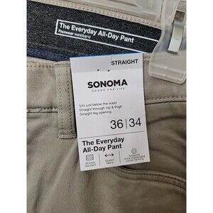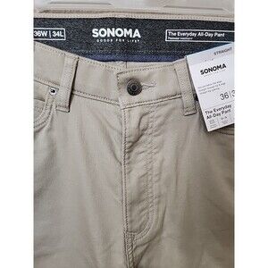 Sonoma Everyday All Day Pants Mens 36x34 Khaki Straight Fit Flexwear Waist NEW