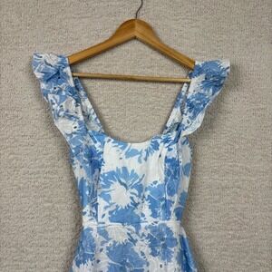 Selfie Leslie Dress Womens Med Blue White Floral Porcia Tied Back Frill Ruffle