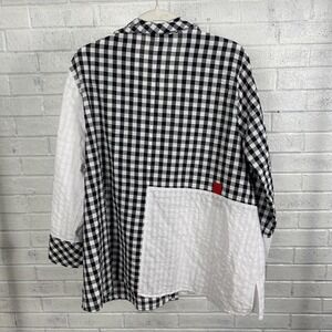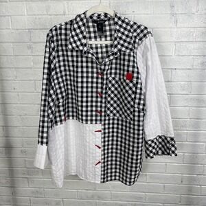 Ali Miles Mixed Print Gingham Seersucker Button Front Top Womens 1X Lagenlook