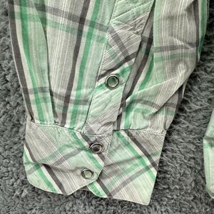 Quicksilver Mens XL Green Plaid Pearl Snap Button Up Shirt Regular Fit Cotton