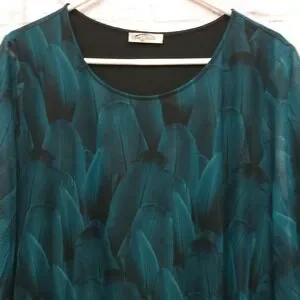 Sese Code Teal Feather Sheer Mesh Tunic Blouse
