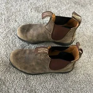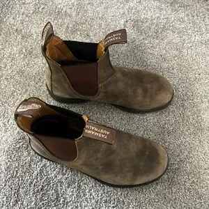 Stylish and durable brown leather Chelsea boots perfect for any occasion. AU size 5.5, fits a women's 8 or 8.5. These have a rustic finish so there is variation in the leather appearance.