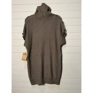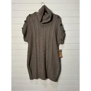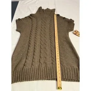 New! Ruff Hewn Womens XL Wool Brown Cable Knit Button Sleeve Turtleneck Top