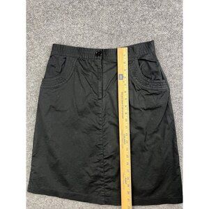 ModCloth Skirt Women's Medium Black A Line Knee Pockets Zipper Rear Button Slit