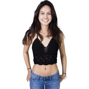 Lakhays Black Crochet Beach Bikini Bralette Crop Top One Size Boho Hippie 70's