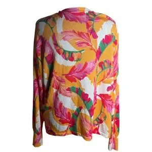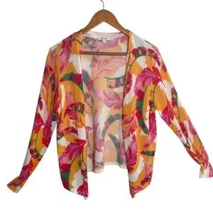 Chico's Open Front Colorful Lightweight Floral Cardigan Women Size 2 L Layering