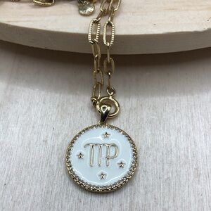 Gold tone, enamel pendant.