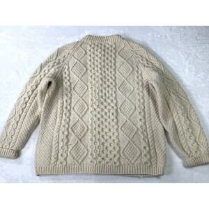 Ireland Handknit Sweater Cardigan Women's M L Blarney 100% Wool Fisherman Chucky