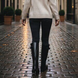 Hunter Tall High Gloss Black All Weather Rain Boot Size 6