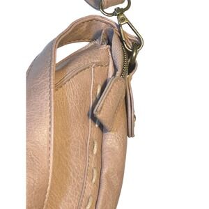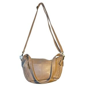 Keywords: hobo bag, crossbody, tan bag, faux leather, boho, casual, everyday, textured, adjustable strap, metal hardware, zipper closure, stitched detail, Vegan Purse
