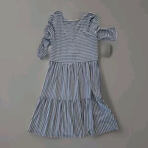 Matilda Jane Womens Midi Dress Size Medium Gray Black Striped Stretchy A Line