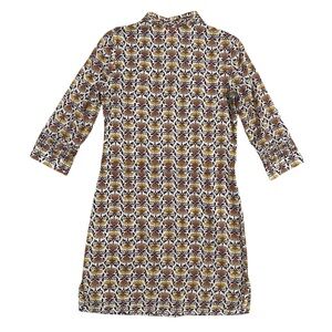 Elegant dress with floral design. Features rich maroon, yellow, and cream hues. Ideal for any occasion.