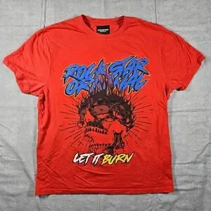 Rockstar Original Mens Red Orange Let It Burn Skull Graphic T-Shirt Medium