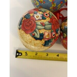 The product is a set of 15 vintage MCM decoupage Christmas ornaments. These round ornaments feature a multicolor design and are part of a collection that includes decorations and Santa-themed ornaments. Perfect for adding a nostalgic touch to your holiday decor, these ornaments are sure to bring charm and character to your Christmas tree.