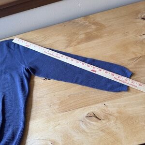 Tag shows One Size, but measurements show best fits a Small-Medium, 100% pima cotton, lilac, open weave, v-neck, beautiful contrasting buttons.