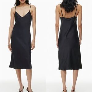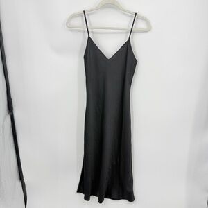 Aritzia Wilfred Only Slip Satin Midi Dress solid black spaghetti strap sz 2XS