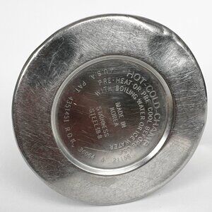 This vintage Champ Hot-Cold thermos is a rugged, vacuum-insulated bottle crafted from "unbreakable" stainless steel. The design includes a screw-on lid that functions as a drinking cup and a sturdy black carrying handle for portability. These durable flasks are popular collectible items but can also be restored and used. Lot of wear on this thermos as seen on the exterior with dings, the handle strap that has a cut in it, and the interior. Well loved with a lot of character