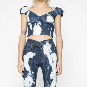 I.Am.Gia Despina Bleached Tie Dye Denim Halter Crop Top size XXS $90