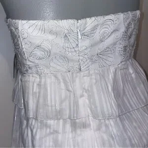 Lilly Pulitzer Arden dress embroidered strapless mini ruffled white cotton 8. NEW WITH TAGS. Stunning. Chic strapless dress with layered ruffles. Metallic thread throughout. This is show-stopping. Silicone strip keeps top in place.