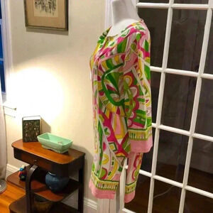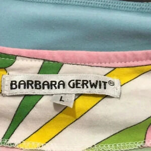 Barbara Gerwit pink, orange, white, and green geometric design dress. Size L