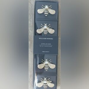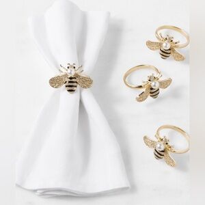 Williams Sonoma bejeweled bee napkin rings add a fanciful touch to place settings. Featuring a gold-plated finish and hand-painted stripes, they complement a wide range of linens and dinnerware. With everyone feeling like the queen, the table is sure to be abuzz – no matter what's on the menu.